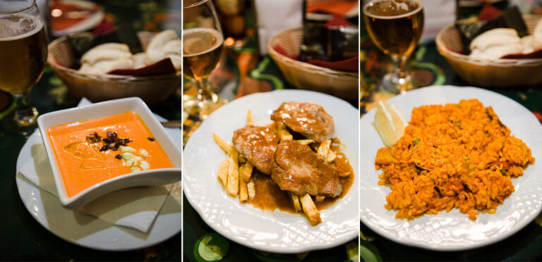 Bodega Paco Gongora – Fried squid, gazpacho, paella, pork loin with whiskey sauce.